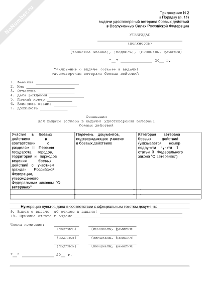 - 102Заключение о выдаче (отказе в выдачи) удостоверения ветерана боевых действий