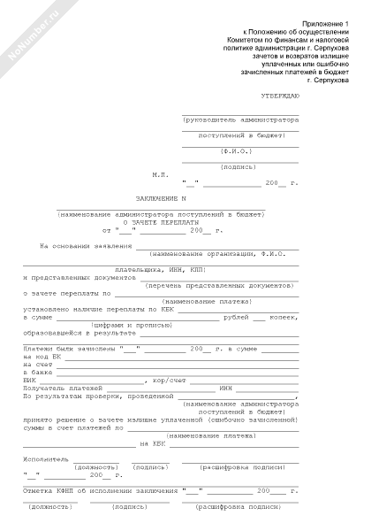 - 106Заключение о зачете переплаты в бюджет города Серпухова Московской области