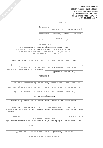 - 107Заключение о заведении учетно-профилактического дела на лицо, освобожденное из мест лишения свободы, в отношении которого установлены ограничения в соответствии с законом