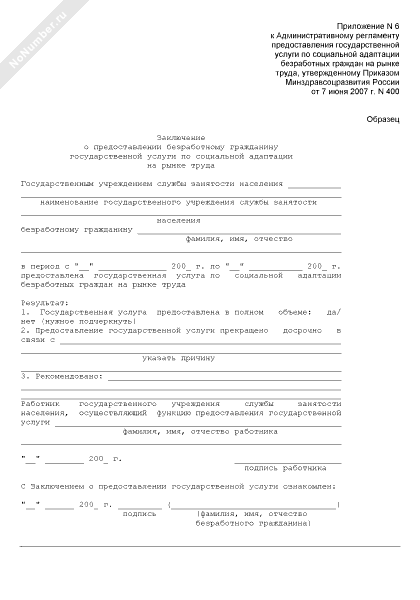 - 173Заключение о предоставлении безработному гражданину государственной услуги по социальной адаптации на рынке труда