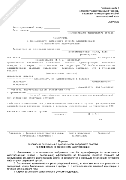 - 179Заключение о приемлемости выбранного способа идентификации (о возможности идентификации) товаров, ввозимых на территорию особой экономической зоны
