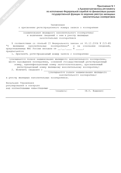 - 180Заключение о присвоении регистрационного номера записи о кооперативе и включении сведений о нем в реестр жилищных накопительных кооперативов