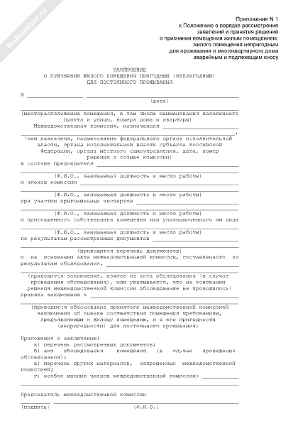- 168Заключение о признании жилого помещения пригодным (непригодным) для постоянного проживания