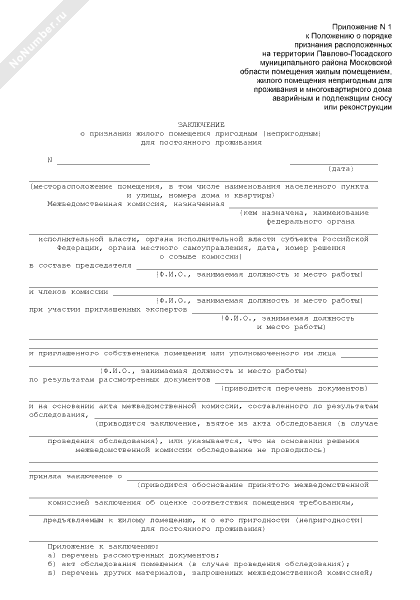- 164Заключение о признании жилого помещения пригодным (непригодным) для постоянного проживания на территории Павлово-Посадского муниципального района Московской области
