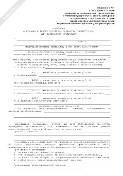 - 167Заключение о признании жилого помещения пригодным (непригодным) для постоянного проживания, расположенного в Клинском муниципальном районе Московской области