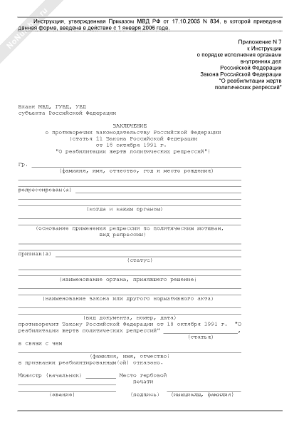 - 165Заключение о противоречии законодательству Российской Федерации (статья 11 Закона Российской Федерации от 18 октября 1991 г. «О реабилитации жертв политических репрессий»)