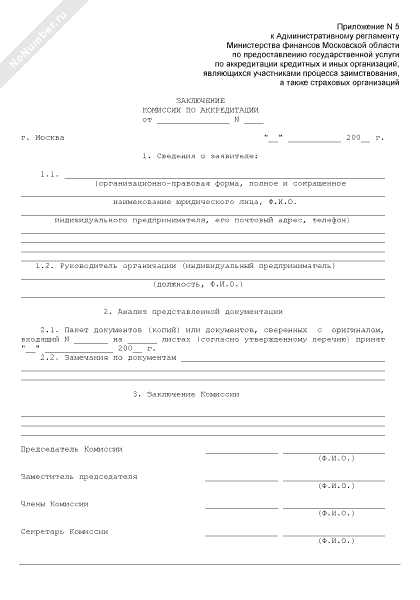 Заключение комиссии по аккредитации Министерства финансов Московской области (рекомендуемый образец заполнения)