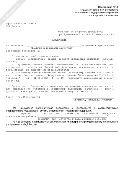 Заключение комиссии по вопросам гражданства при Президенте Российской Федерации на заявление гражданина о приеме в гражданство Российской Федерации (рекомендуемый образец заполнения)