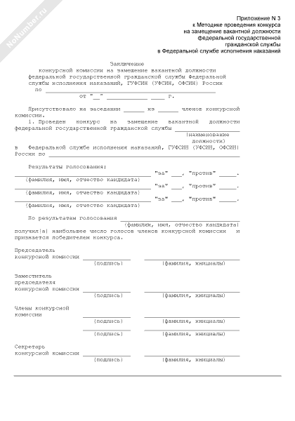 Заключение конкурсной комиссии на замещение вакантной должности федеральной государственной гражданской службы Федеральной службы исполнения наказаний, ГУФСИН (УФСИН, ОФСИН) России