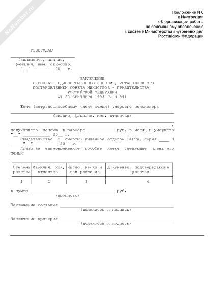 Заключение о выплате единовременного пособия, установленного постановлением совета министров — Правительства Российской Федерации от 22 сентября 1993 г. № 941 (рекомендуемый образец заполнения)
