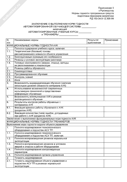 Заключение о выполнении норм годности автоматизированной обучающей системы, включающей автоматизированные учебные курсы и тренажеры для подготовки персонала энергетики (рекомендуемый образец заполнения)
