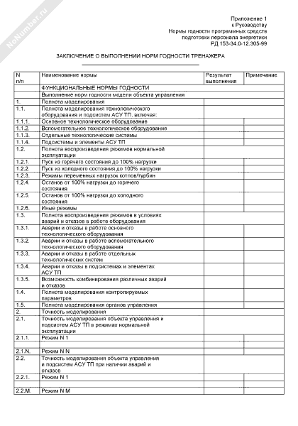 Заключение о выполнении норм годности тренажера для подготовки персонала энергетики (рекомендуемый образец заполнения)