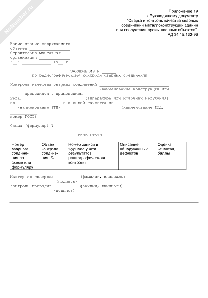 Заключение по радиографированию сварных соединений. Форма № П27.16