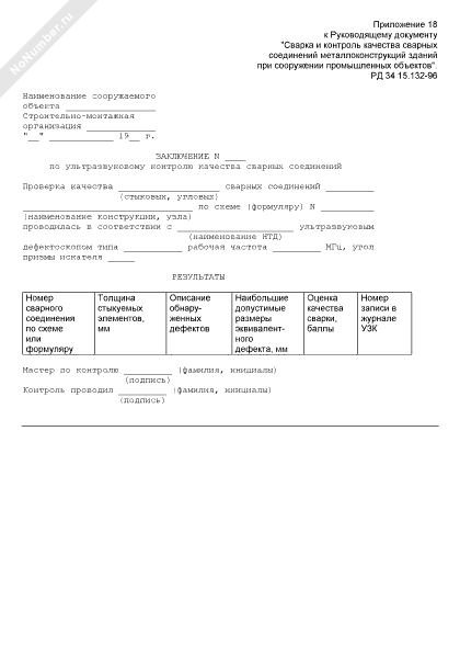 Заключение по ультразвуковому контролю качества сварных соединений