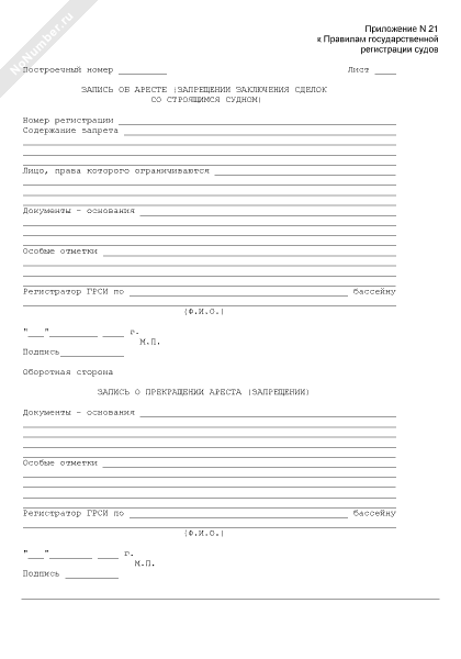 Запись об аресте (запрещении заключения сделок со строящимся судном)
