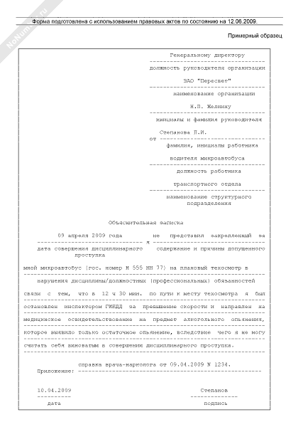 - 62Объяснительная записка работника о причинах нарушения дисциплины/должностных (профессиональных) обязанностей