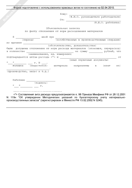 - 63Объяснительная записка работника по факту отклонения от норм расходования материалов