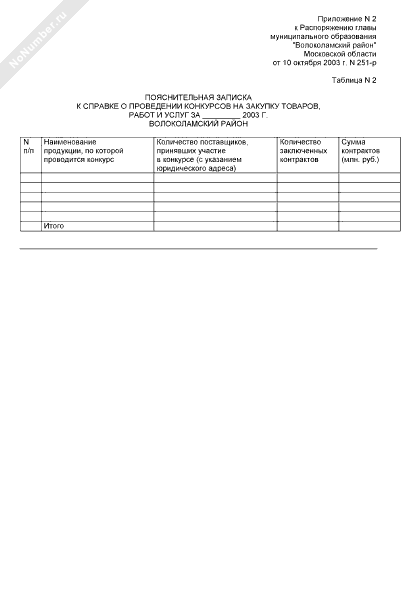 - 79Пояснительная записка к справке о проведении конкурсов на закупку товаров, работ и услуг для муниципальных нужд Волоколамского района Московской области. Таблица № 2