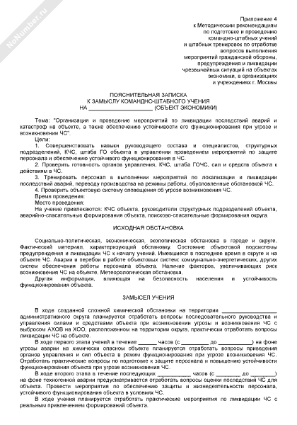 - 76Пояснительная записка к замыслу командно-штабного учения на объекте экономики