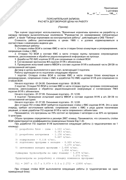 - 78Пояснительная записка расчета договорной цены на работу (приложение к договору подряда на проведение научно-исследовательских и опытно-конструкторских работ по созданию (модернизации), изготовлению установочных (опытных) партий и эксплуатации информационно-технических средств)