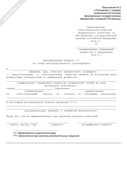- 96Пояснительная записка гражданского служащего Федерального агентства по обустройству государственной границы Российской Федерации на отзыв непосредственного руководителя