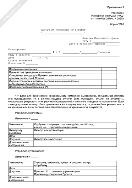 - 230Запрос на изменения по инвестиционного проекту ОАО «Российские железные дороги». Форма № УП-8