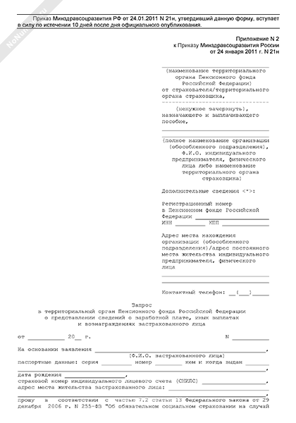 - 225Запрос в территориальный орган Пенсионного фонда Российской Федерации о представлении сведений о заработной плате, иных выплатах и вознаграждениях застрахованного лица