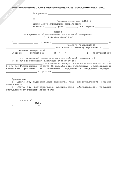 - 234Запрос поверенного об отступлении от указаний доверителя по договору поручения