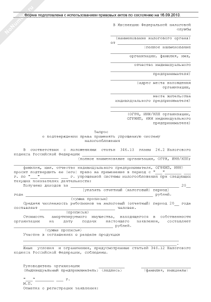 - 22Запрос в налоговый орган о подтверждении права применять упрощенную систему налогообложения