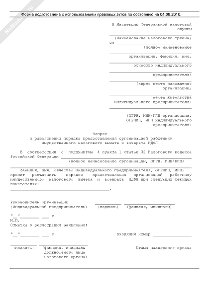 - 25Запрос в налоговый орган о разъяснении порядка предоставления организацией работнику имущественного налогового вычета и возврата НДФЛ