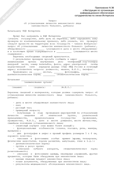 - 36Запрос в национальное центральное бюро Интерпола об установлении личности гражданина по неопознанному трупу