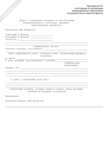- 33Запрос в национальное центральное бюро Интерпола о проведении проверок по преступлению террористического характера (с использованием нетрадиционных видов оружия, взрывчатых веществ и взрывных устройств, а также иных опасных материалов и веществ), имеющему международную значимость