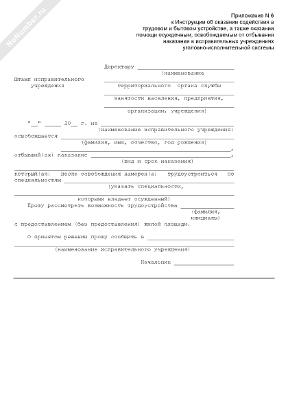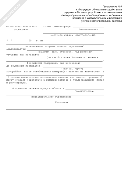 - 40Запрос в орган федеральной службы занятости населения по избранному месту жительства о возможности трудоустройства, предоставления регистрации и жилья осужденному после освобождения из мест лишения свободы и желания трудоустроиться