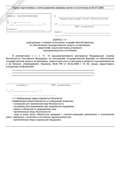 - 64Запрос информации о порядке исполнения государственной функции по обеспечению государственной защиты потерпевших, свидетелей, иных участников уголовного судопроизводства и их близких
