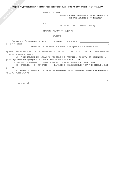 - 63Запрос информации об установленных ценах и тарифах на услуги и работы по содержанию и ремонту многоквартирных домов и жилых помещений в них, о размерах оплаты в соответствии с этими ценами и тарифами, об объеме, о перечне и качестве оказываемых услуг и выполняемых работ, а также о ценах и тарифах на предоставляемые коммунальные услуги и размерах оплаты этих услуг