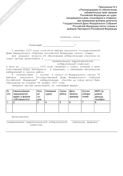 - 67Запрос капитану порта о предоставлении данных о судах, которые в день голосования будут находиться в плавании (с указанием численности избирателей и сроков рейса), заблаговременно до назначения выборов депутатов Государственной Думы, выборов Президента Российской Федерации