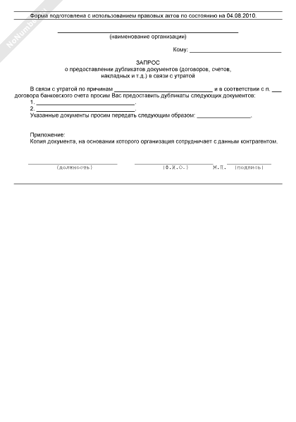 - 68Запрос контрагенту о предоставлении дубликатов документов (договоров, счетов, накладных и т.д.) в связи с утратой