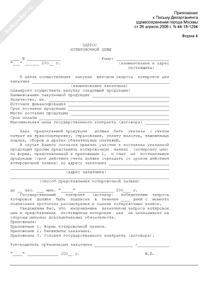- 73Запрос котировочной цены на закупку продукции для нужд лечебно-профилактических учреждений и структурных подразделений Департамента здравоохранения города Москвы (форма № 4)
