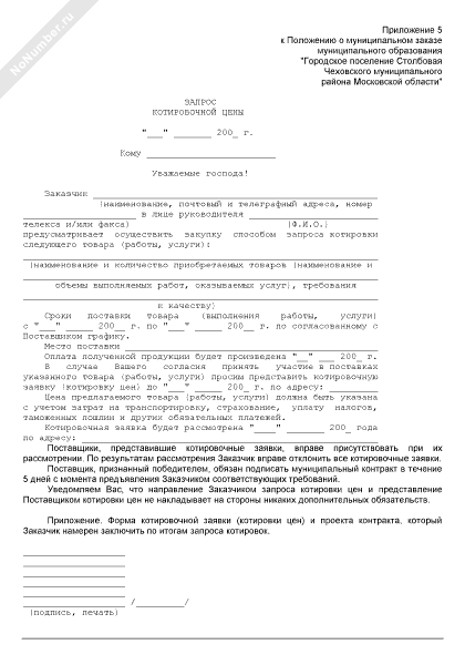 - 71Запрос котировочной цены при размещении муниципального заказа городского поселения Пересвет Московской области