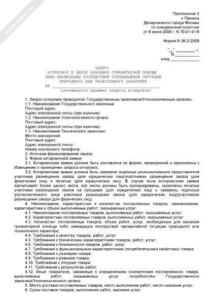 - 70Запрос котировок в целях оказания гуманитарной помощи либо ликвидации последствий чрезвычайной ситуации природного или техногенного характера. Форма № ЗК-2-2009