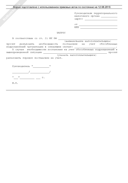 - 124Запрос о порядке (необходимости) постановки на учет обособленных подразделений
