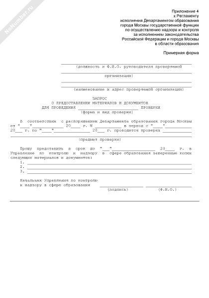 - 133Запрос о предоставлении материалов и документов для проведения проверки исполнения законодательства Российской Федерации и города Москвы в области образования