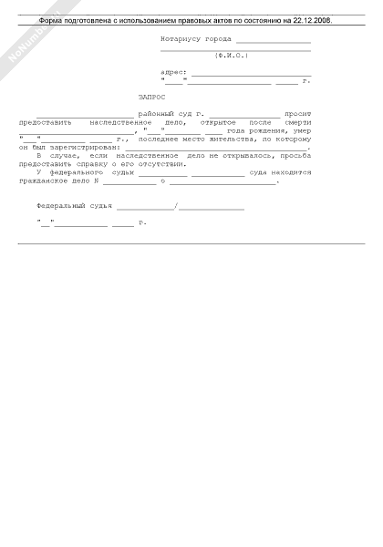 - 136Запрос о предоставлении наследственного дела или справки об его отсутствии для рассмотрения в суде гражданского дела