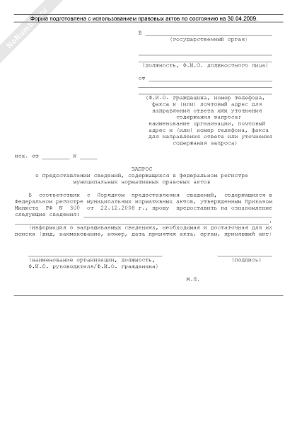 - 129Запрос о предоставлении сведений, содержащихся в федеральном регистре муниципальных нормативных правовых актов