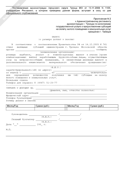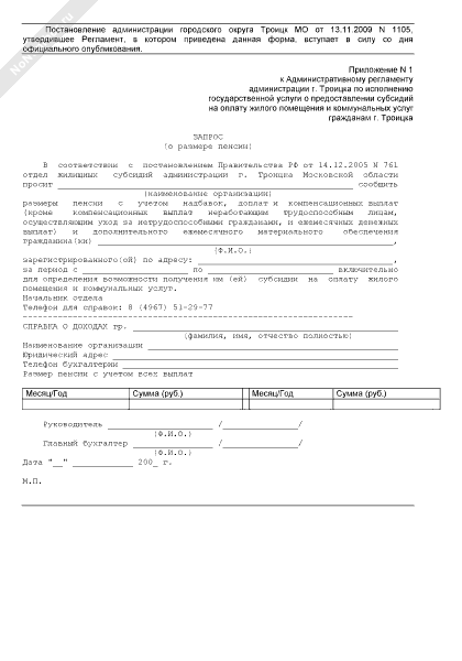 - 164Запрос о размере доплат к пенсии жителя г. Троицка Московской области для получения им субсидии на оплату жилого помещения и коммунальных услуг