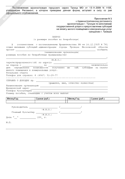 - 165Запрос о размере пособия по безработице жителя г. Троицка Московской области для получения им субсидии на оплату жилого помещения и коммунальных услуг