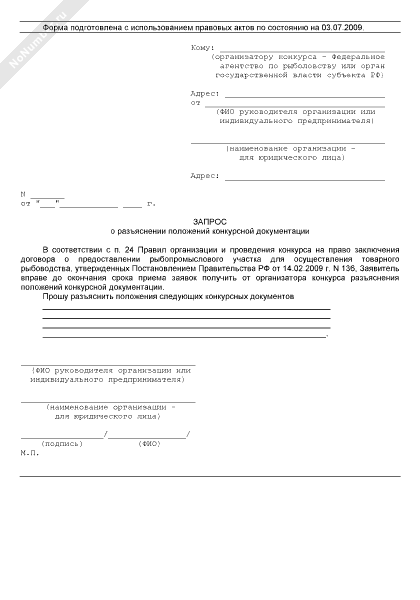 - 167Запрос о разъяснении положений документации конкурса на право заключения договора о предоставлении рыбопромыслового участка для осуществления товарного рыбоводства