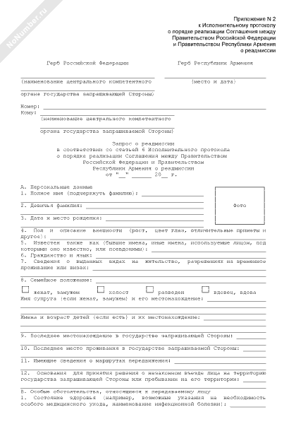 - 173Запрос о реадмиссии в соответствии со статьей 6 Исполнительного протокола о порядке реализации Соглашения между Правительством Российской Федерации и Правительством Республики Армения о реадмиссии (приложение к исполнительному протоколу о порядке реализации Соглашения между Правительством Российской Федерации и Правительством Республики Армения о реадмиссии)