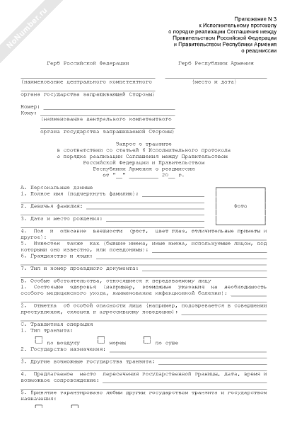 - 179Запрос о транзите в соответствии со статьей 6 Исполнительного протокола о порядке реализации Соглашения между Правительством Российской Федерации и Правительством Республики Армения о реадмиссии (приложение к исполнительному протоколу о порядке реализации Соглашения между Правительством Российской Федерации и Правительством Республики Армения о реадмиссии)