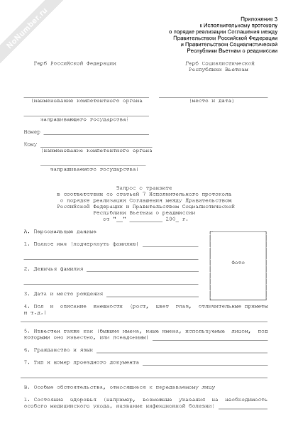 - 180Запрос о транзите в соответствии со статьей 7 Исполнительного протокола о порядке реализации Соглашения между Правительством Российской Федерации и Правительством Социалистической Республики Вьетнам о реадмиссии
